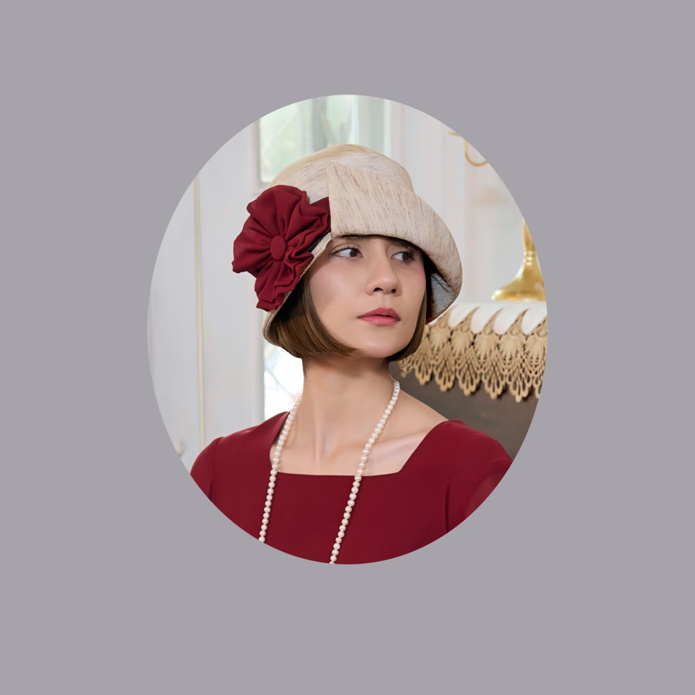 This Roaring 20s day dress is a beautiful example of authentic 1920s design, crafted in light chiffon with a soft red Art Deco print and deep maroon red contrasting details. With its drop waist silhouette, emphasized by contrasting piping, bias-cut skirt, and long sleeves, it reflects the elegance of non-flapper daywear from the Jazz Age. A cheerful yet refined handmade dress, perfect for autumn afternoons, Downton Abbey style gatherings, or vintage lovers seeking timeless charm.