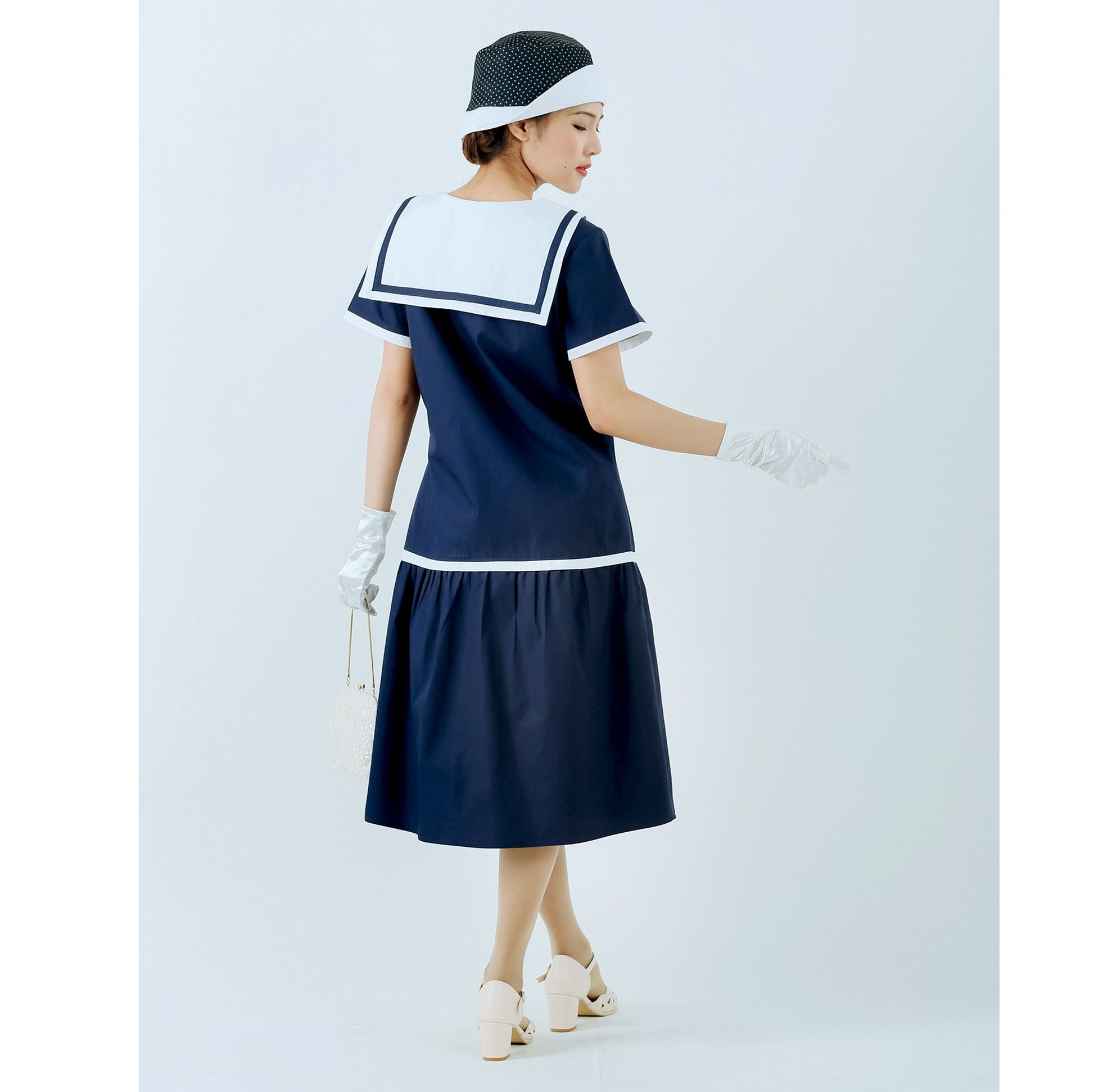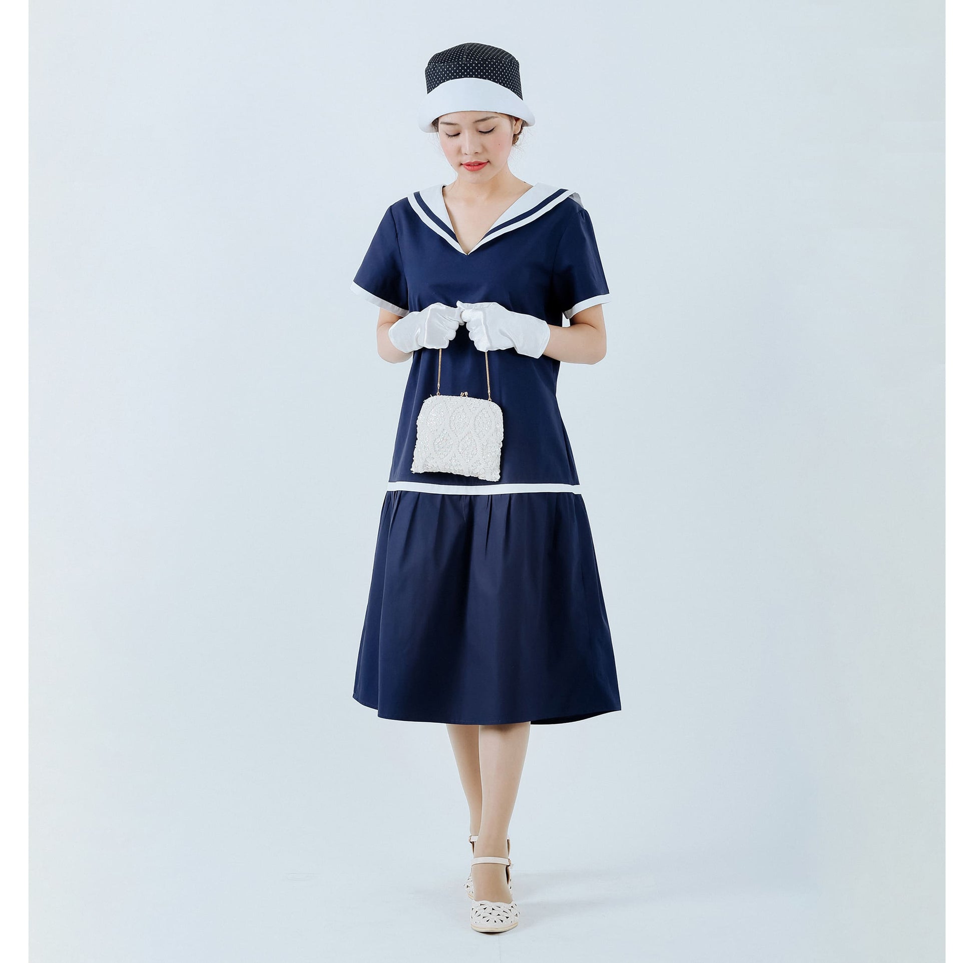1920s sailor dress in navy and pure white cotton