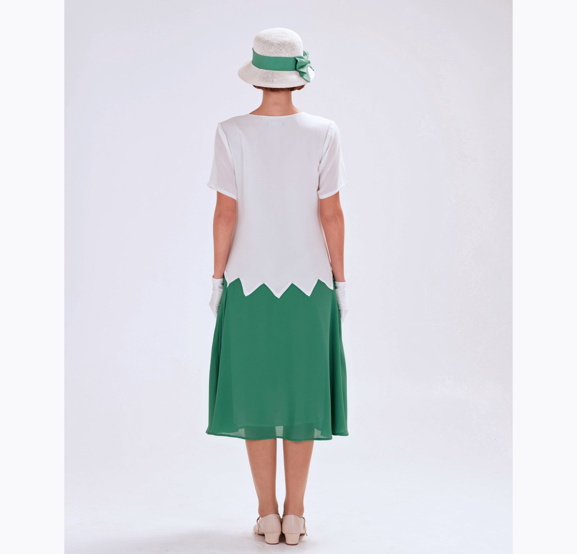 1920s-style dress in off-white & jade green chiffon with zigzag detail