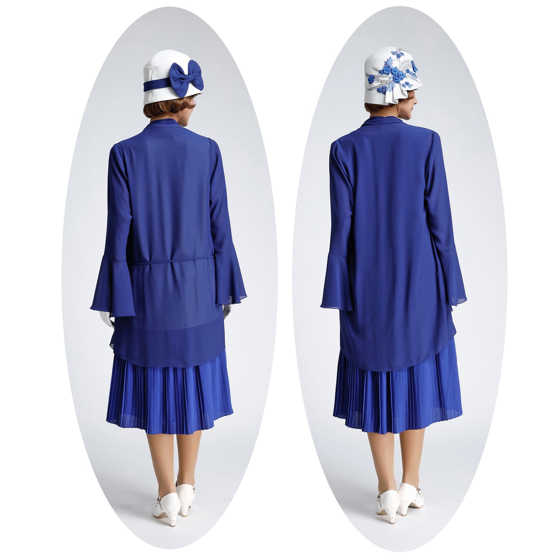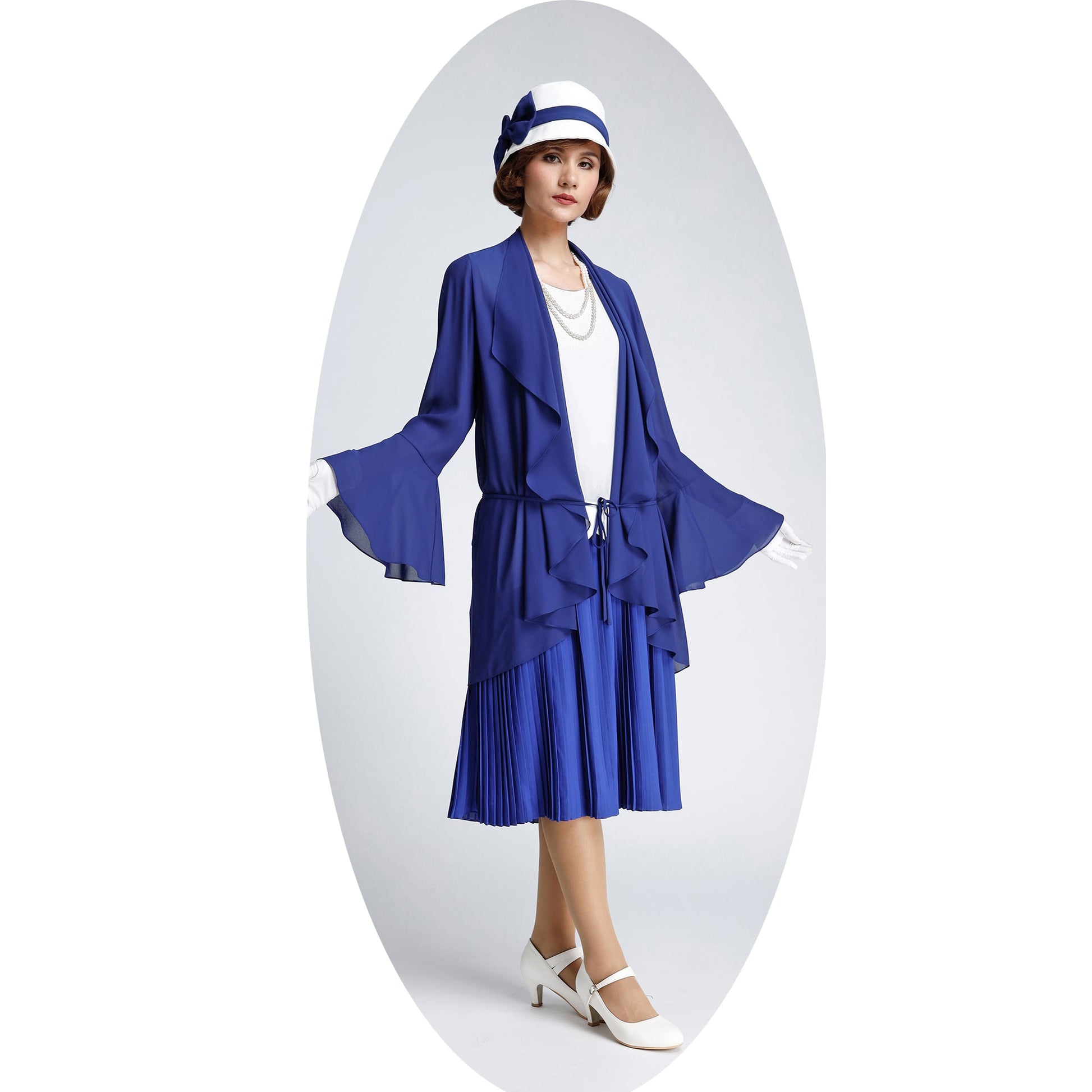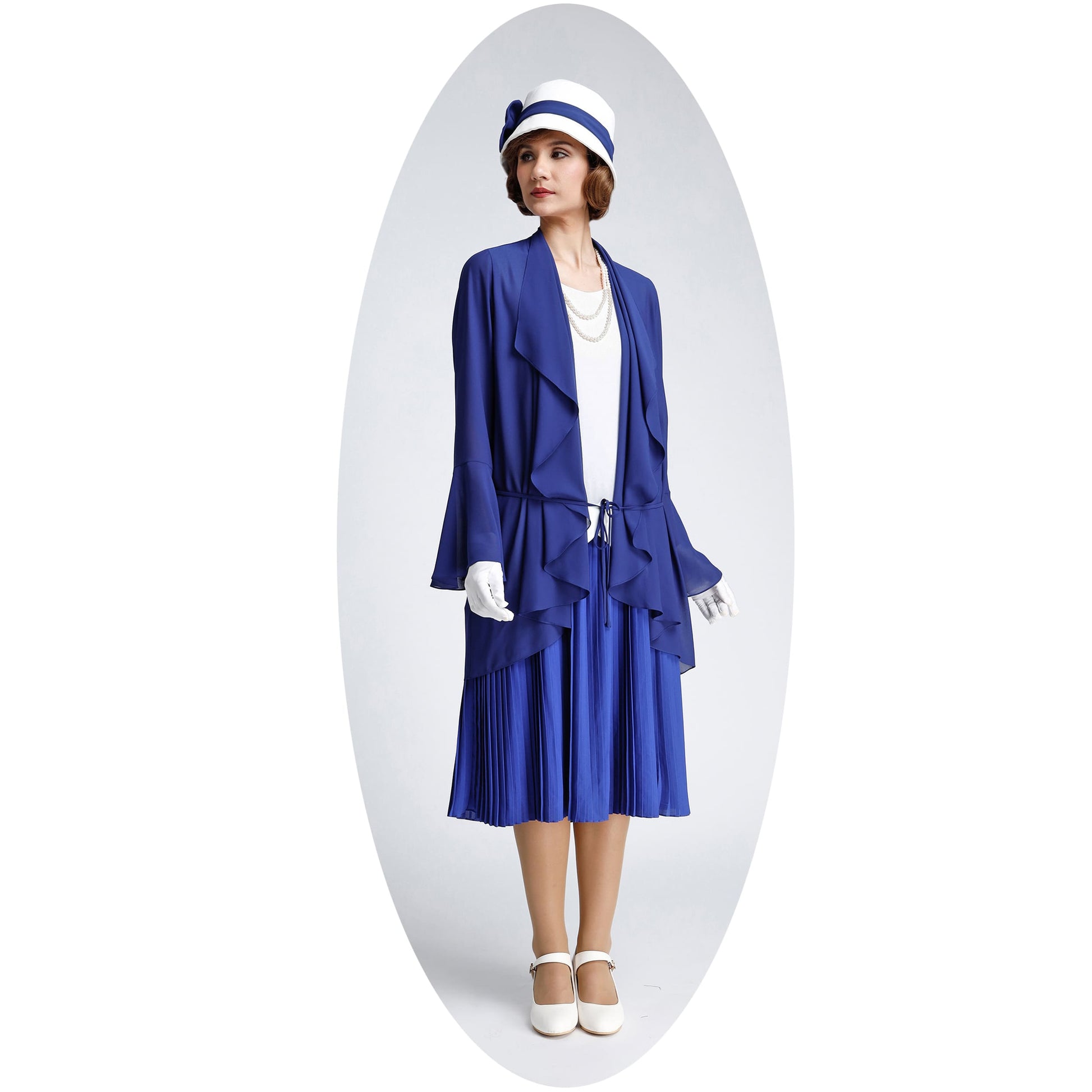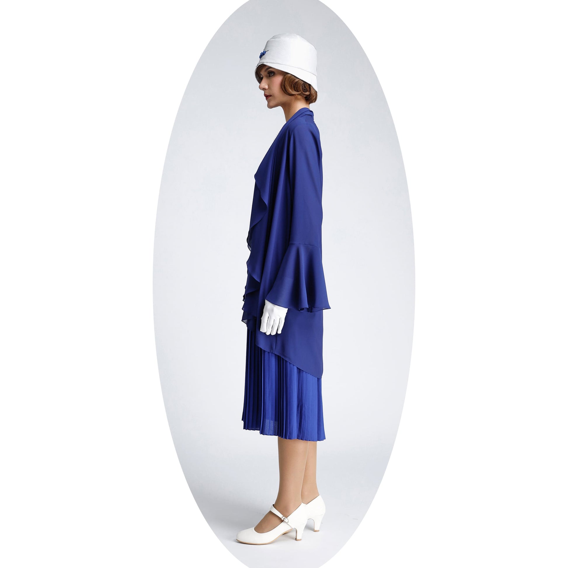 This is pretty 20s party cardigan made of dark blue chiffon, which is soft and drapes very well. Get ready for your roaring twenties event with this handmade 1920s jacket with cascade collar, which can be worn, for instance, as a Great Gatsby jacket, a 1920s high tea cardigan, a flapper jacket or a mother of the bride jacket.