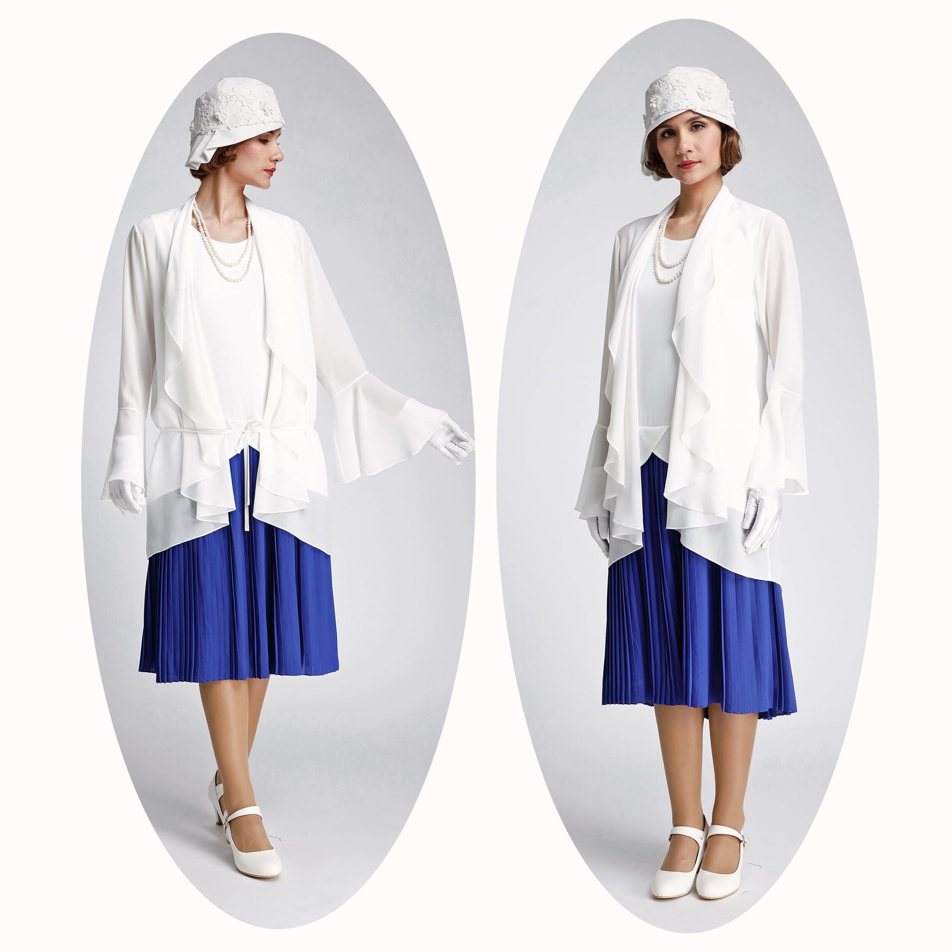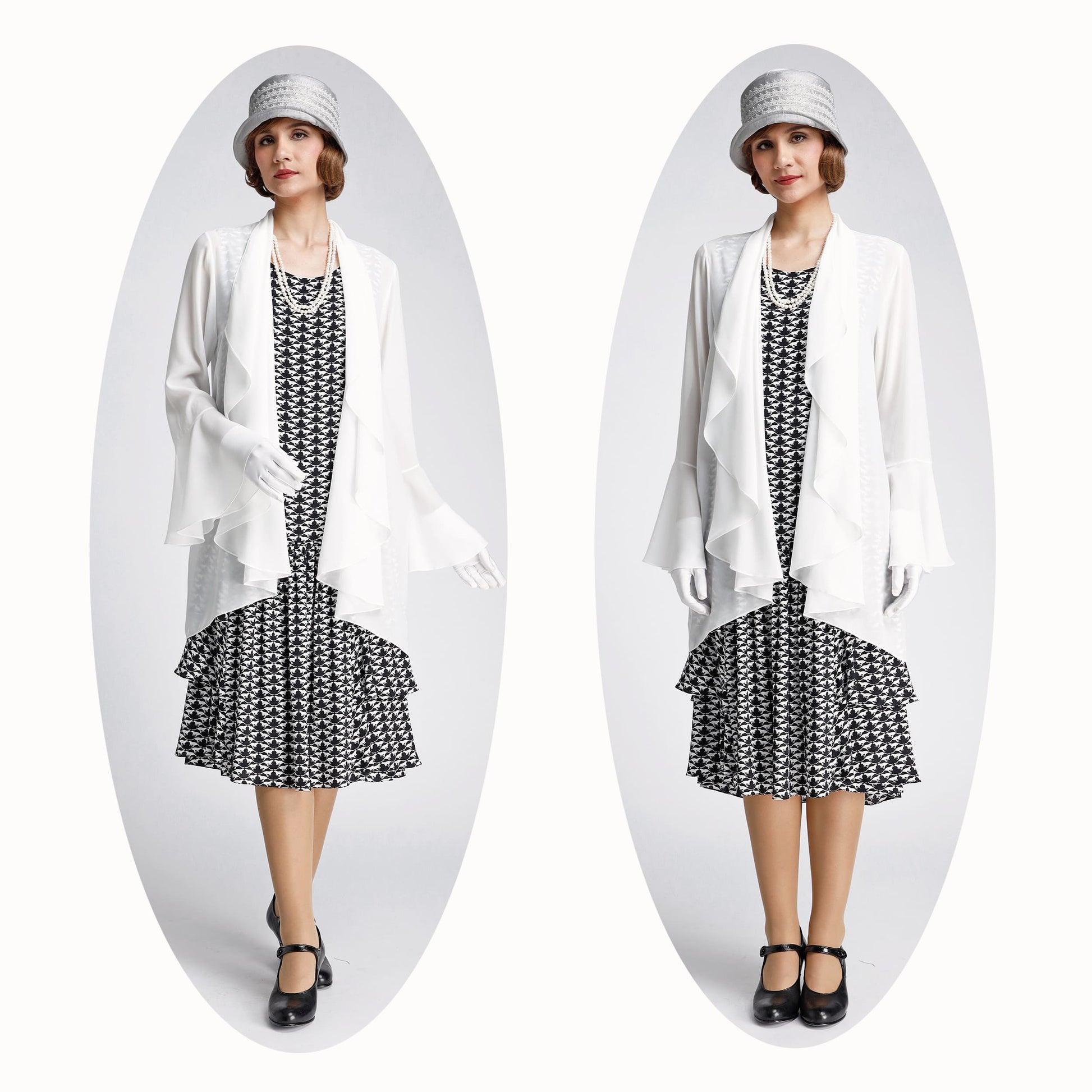 Looking for a pretty jacket as a perfect addition to your 1920s wardrobe? This 1920s off-white party jacket is handmade and the chiffon fabric is soft and drapes very well. It can be worn, for example, as a Downton Abbey high tea jacket, a Great Gatsby sheer jacket, a flapper jacket or a mother of the bride jacket.