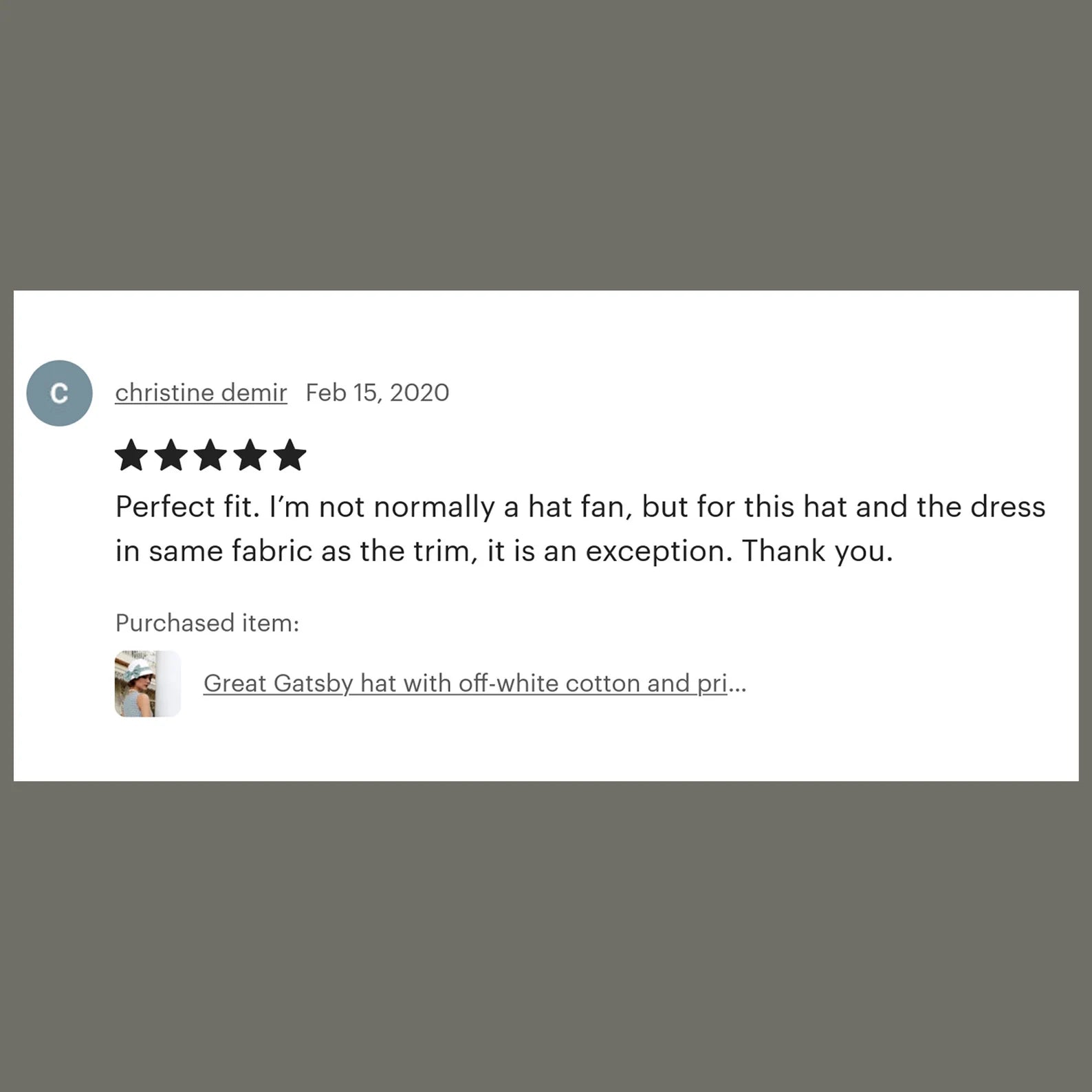 Great Gatsby hat of off-white cotton and blue/green printed chiffon