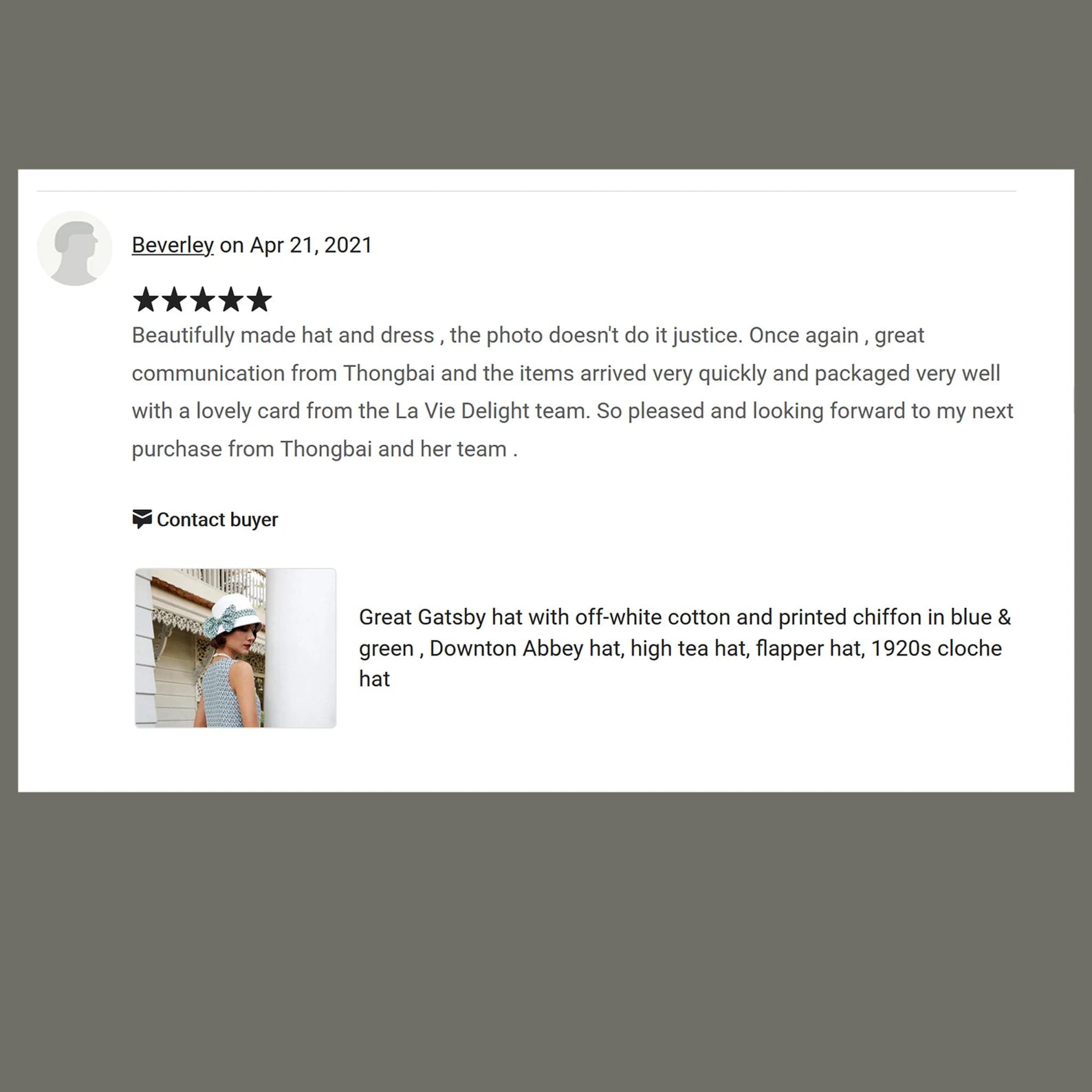 This 1920s high tea cloche hat is made of off-white cotton and printed chiffon in blue and green. The handmade Cloche can be worn as a Downton Abbey hat, a Great Gatsby hat or a flapper hat, among others. With this 1920s cloche hat you'll feel like a flapper in no time.