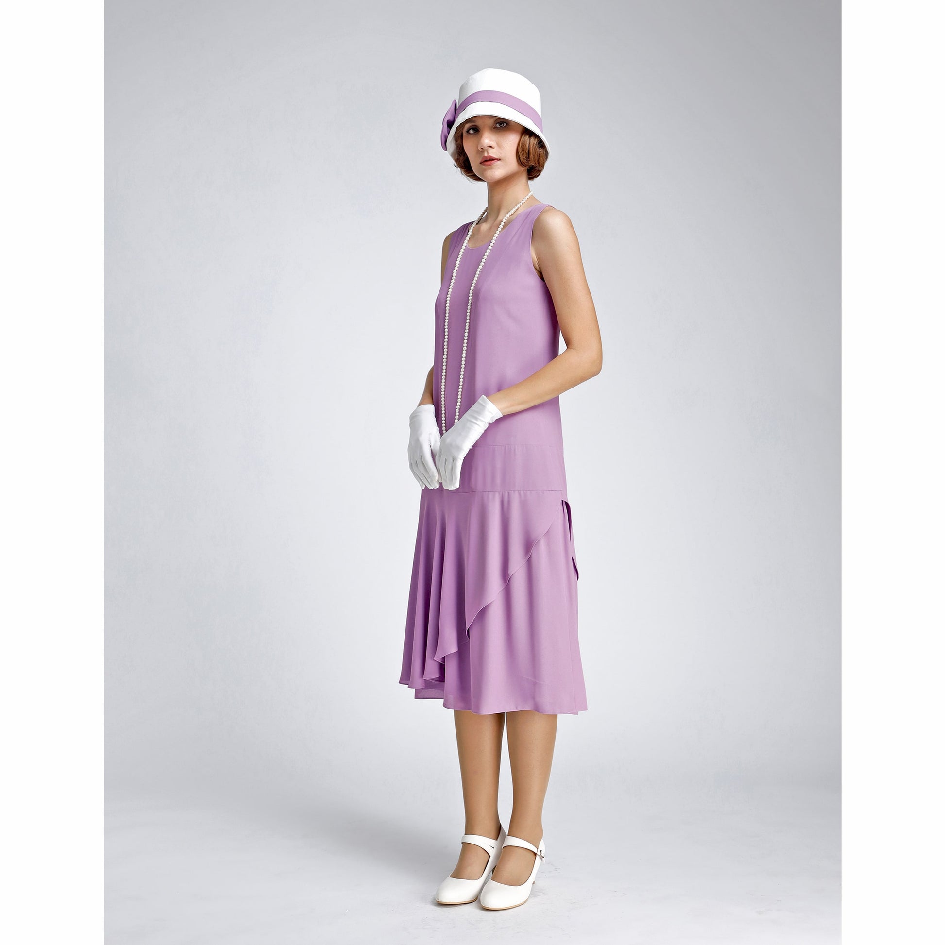 This lovely Great Gatsby hat is made of off-white cotton and lavender ribbon. The handmade roaring 20s Cloche can be worn, for example, as a Downton Abbey hat or a flapper hat. It is a pretty hat for a high tea party, a Jazz Age lawn party or any other roaring twenties summer event.