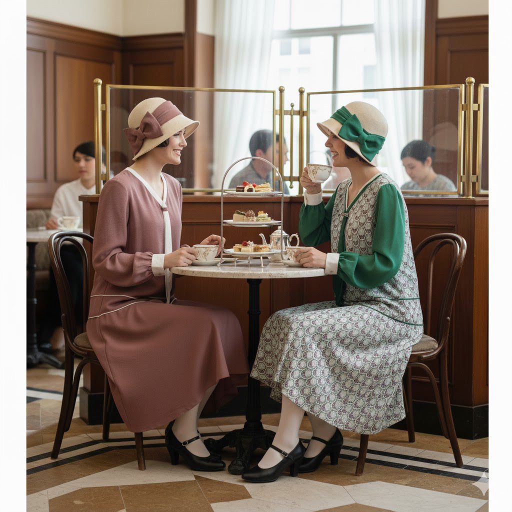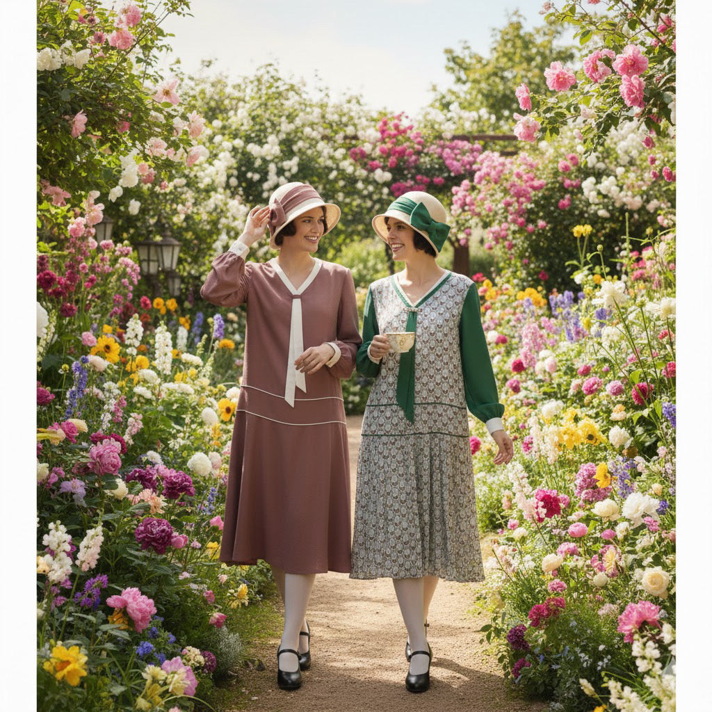 Experience soft vintage charm through this handmade mauve rayon/polyester blend Roaring Twenties fashion dress, echoing the grace of the 1920s. Featuring long cuffed sleeves, a flattering drop waist, and contrasting white accents on the necktie, cuffs, and piping, it carries a timeless Gatsby spirit. Available in both regular and custom sizes, it’s ideal for afternoon tea parties or elegant daytime events.
