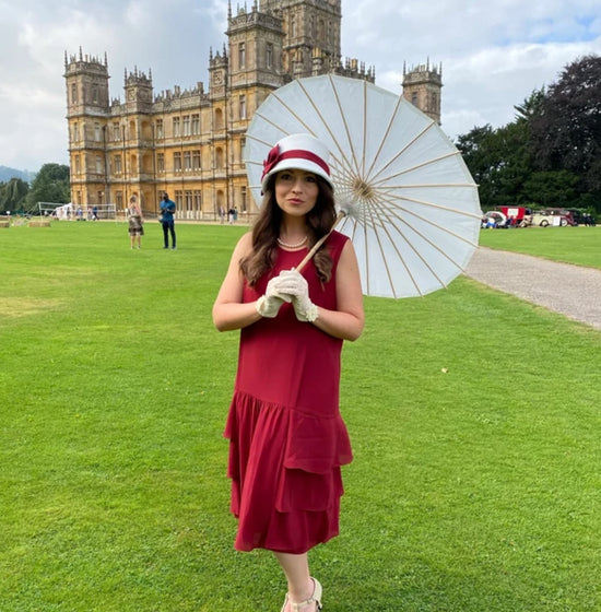 "I can’t recommend this shop enough. Everything about my purchase was easy. The seller responded quickly with great ideas and advice about custom color and size changes. She was just lovely to work with in general. I received so many compliments while we were at Highclere’s Costumes and Cocktails Party. It was the trip of a lifetime and this dress made me feel confident enough that I could actually enjoy myself. Don’t hesitate to order one for yourself! You won’t regret it."