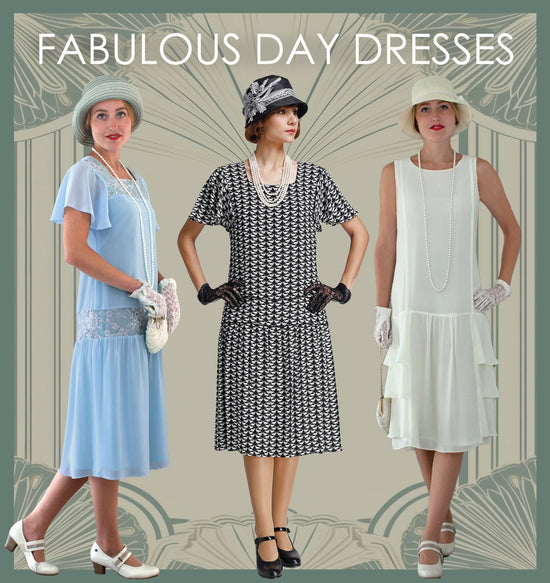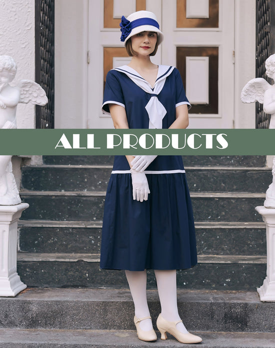 Are you looking for authentic 1920s look with nautical vibes? We offer fantastic blue and white dresses for both day and evening parties. Check them all out!